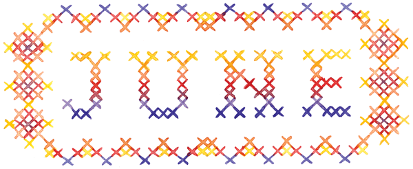 Moving swiftly onward, the June calendar is cross stitch inspired, but in watercolour! It's also an unusual colour palette for me... what do you think? It was pretty fun to create.